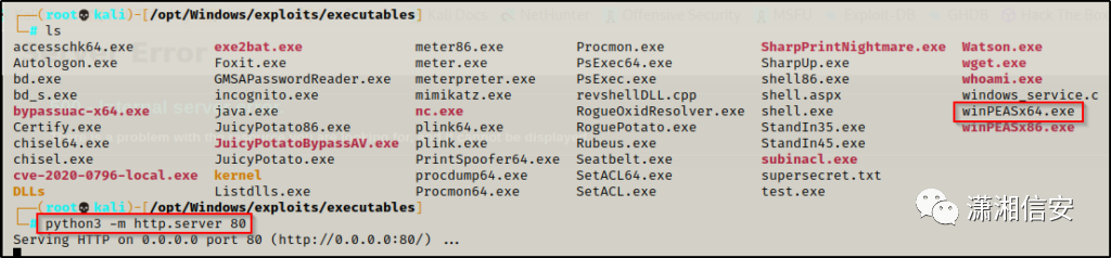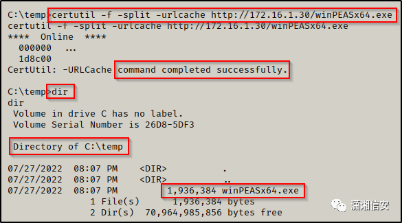 现在文件已准备就绪,我们可以像 winPEAS 一样将其下载到受害者上。
