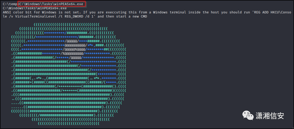 然后我们就可以从C:\Windows\Tasks文件夹中执行winPEAS,绕过AppLocker的限制!