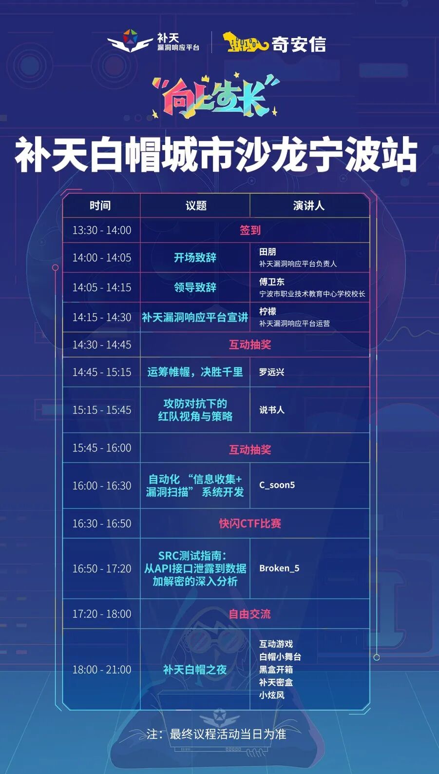 扫码加入补天白帽城市沙龙宁波沙龙活动群,获得最新资讯