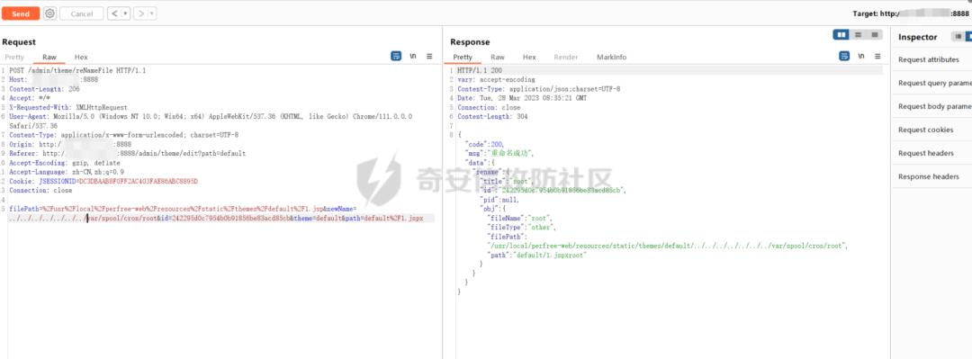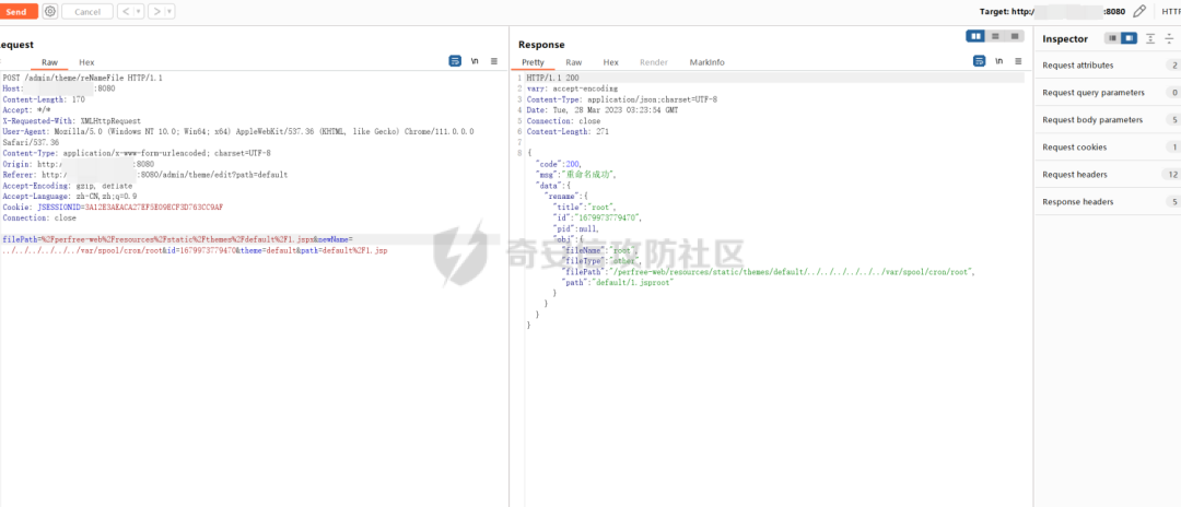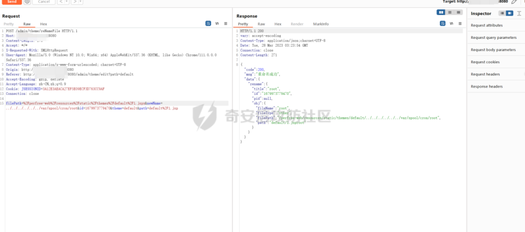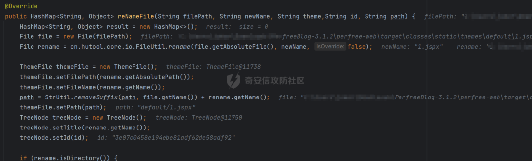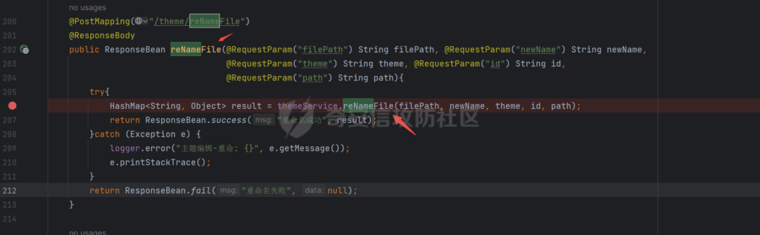 断点调试一下,基本和创建文件的流程差不多,并且没有对重命名传入的文件名进行过滤,也就是说是在重命名文件的时候可以进行目录穿越