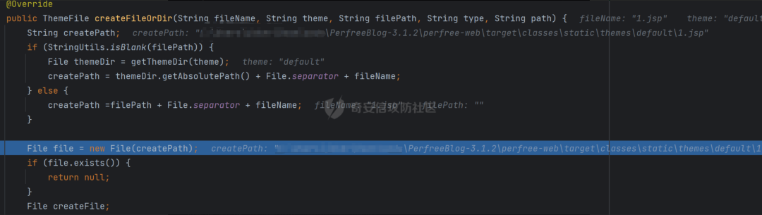 跟进createFileOrDir,将传递的参数进行了处理,对filePath是否为空白字符进行判断