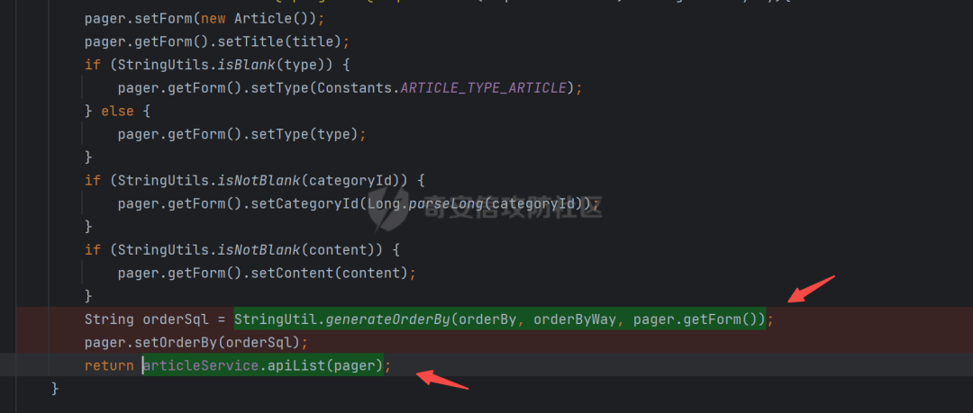 com/perfree/controller/api/ArticleController.java,一些获取参数的就不看了,跟进generateOrderBy