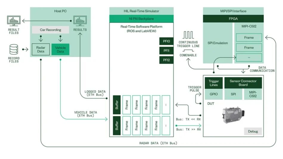 一些ADAS ECU会通过试验场和测试车队获取真实数据记录,而此类ADAS ECU的开环验证必须在复杂的通信接口上以高数据速率启用数据再注入,同时要求实现高精度定时和同步。除记录雷达数据外,还必须对车辆剩余总线通信信号进行并行再处理,如车速信号、偏航率或其他状态数据。对于雷达数据再注入,HIL测试系统必须提供适当的接口,并通过高I/O数据速率和边带通信对再注入进行稳健精确的控制。HIL测试系统软件平台和接口的另一关键方面是在全天候运行HIL测试场的情况下,对HIL测试运行、远程软件部署和HIL操作的全自动化要求。