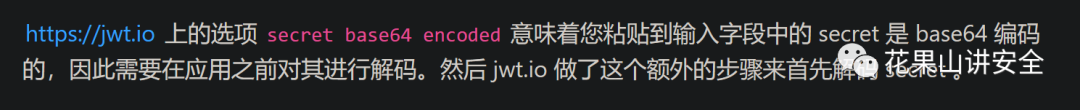 在Nacos身份认证绕过漏洞复现文章中提到jwt.io网站,其中有一个secret base64 encoded的选项,百度一下得知勾选后,即认为密钥是base64编码,加密前会先对密钥进行base64解码。