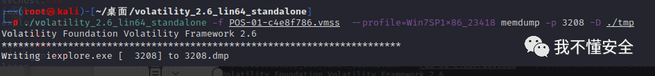 ./volatility_2.6_lin64_standalone -f POS-01-c4e8f786.vmss --profile=Win7SP1x86_23418 iehistory或者将3208进程导出来