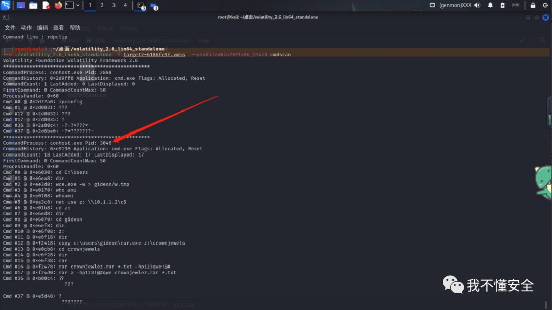 ./volatility_2.6_lin64_standalone -f target2-6186fe9f.vmss --profile=Win7SP1x86_23418 cmdline./volatility_2.6_lin64_standalone -f target2-6186fe9f.vmss --profile=Win7SP1x86_23418 cmdscan