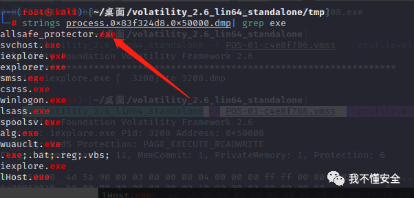 ./volatility_2.6_lin64_standalone -f POS-01-c4e8f786.vmss --profile=Win7SP1x86_23418 memdump -p 3208 -D ./tmp strings 3208.dmp| grep exe | grep all