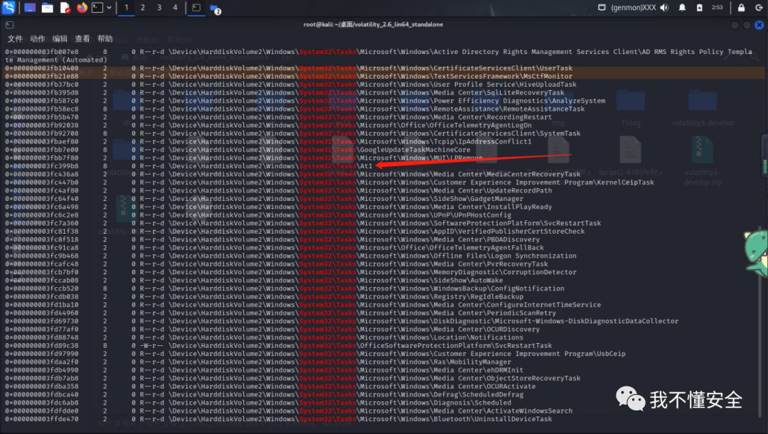 ./volatility_2.6_lin64_standalone -f target2-6186fe9f.vmss --profile=Win7SP1x86_23418 filescan | grep 'System32\\Tasks'导出