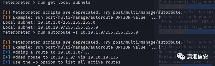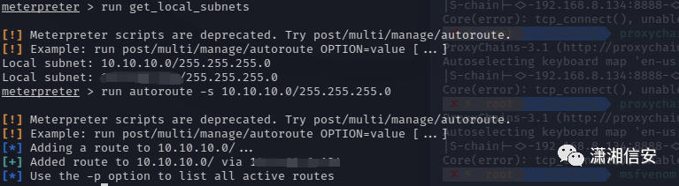 这里注意,如果ew比较麻烦,不太好上传,那我们可以在msf添加了路由之后,使用auxiliary/server/socks4a这个模块,用msf开个socks代理,这样本机可以通过msf的路由来访问内网,proxychains配置就写本机ip即可。