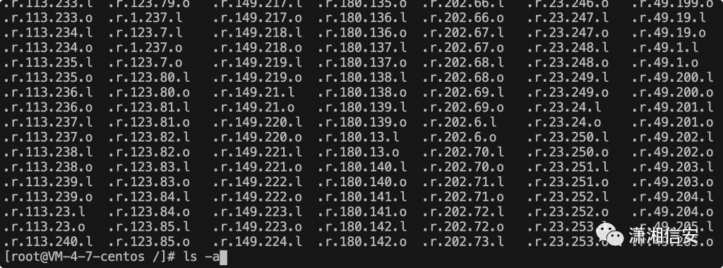 上面这些在入侵时间点发生过修改的文件,都需要检查是否被写入恶意命令。清理掉对应的恶意文件,此时入侵排查的大部分步骤已完成。同时使用find命令发现在/根目录下面有大量的以.r开头隐藏文件。这些都是挖矿木马对外扫描存在6375端口开放的ip。