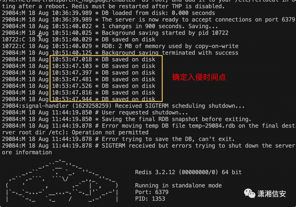 因为在该主机上是我提前搭建好的redis漏洞环境,所以是通过redis入侵的。查看reids的相关日志确定对应时间有写入文件的操作。收到告警后第一时间对被感染的主机做了快照备份,当然不清楚感染的是挖矿还是勒索的情况下,最好还是先关机处理。毕竟应急响应的核心点是及时止损。
