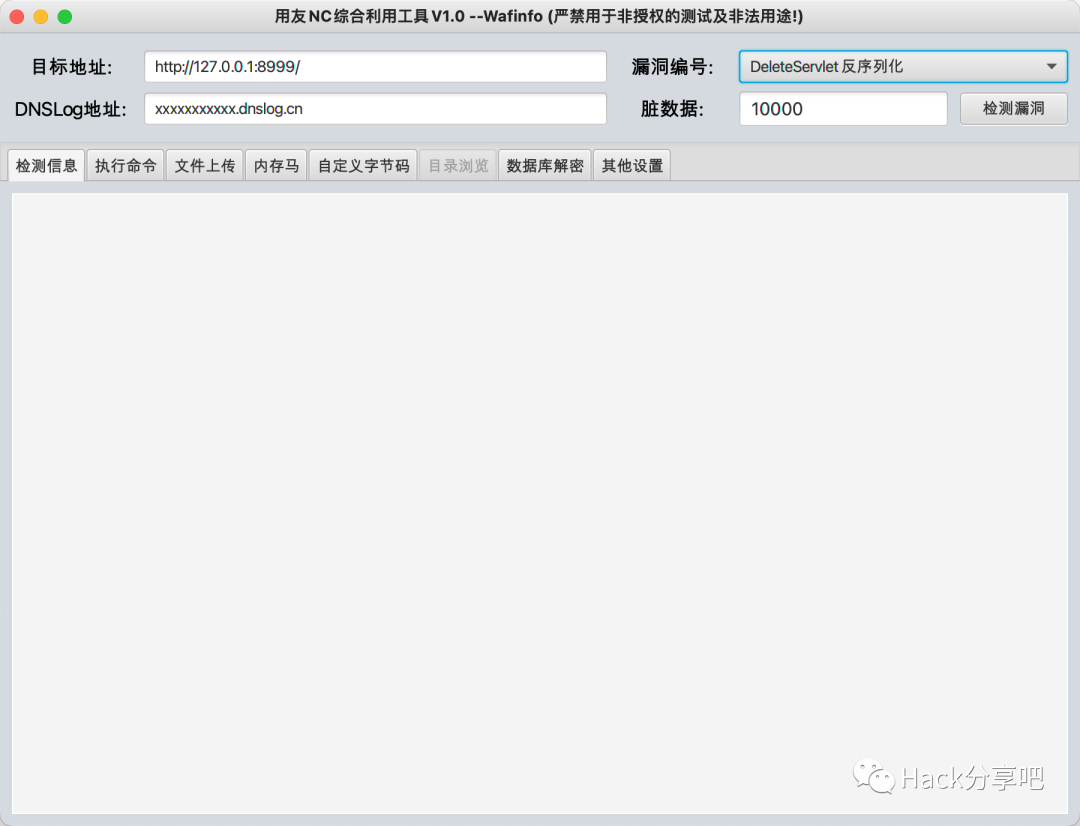 @wafinfo师傅分享的一款针对用友NC综合漏洞利用工具,设计旨在简化授权项目中繁琐的步骤,并解决市面上用友NC系列漏洞工具存在的问题。