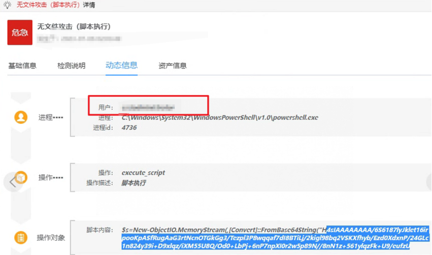 接着使用wmic向内网其他机器执行powershell命令,内存加载Cobalt Strike管道木马,此过程被奇安信天眼检测到。