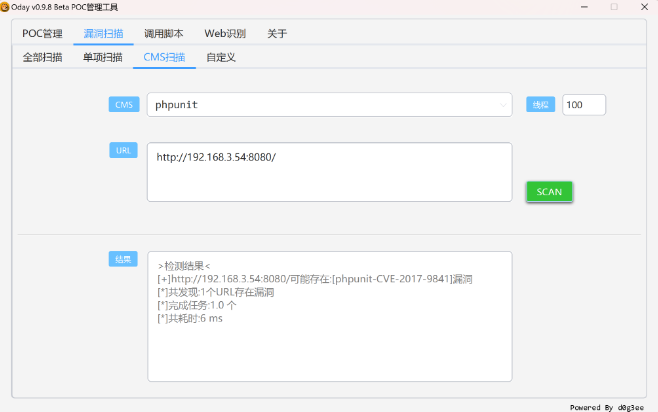 - 4、cms扫描即扫描某个cms的漏洞,这取决于添加poc时填入的cms名称;