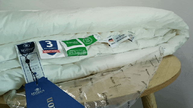 60支的高支面料,当你触摸到你就能感受到特别柔软;由于是五星Hilton酒店授权款,五星级的被子果然不会让人失望。