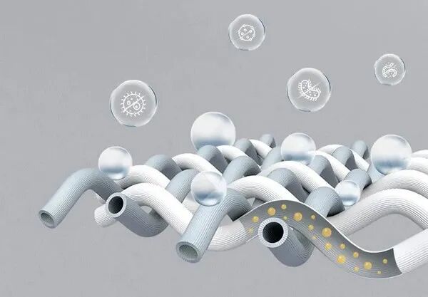 无数螨虫和细菌在枕头上面爬行,想想鸡皮疙瘩都起来了~如果长久的使用这种被子,后背、脖子就容易出现各种痘痘、过敏等症状~为了防止细菌的滋生,德国进口的Suprelle抗菌纤维就发挥了功效~主要是通过微电荷捕捉的原理,一般细菌本身带生物电荷,而Suprelle抗菌纤维利自身带正电荷分的特性,能够吸附细菌。