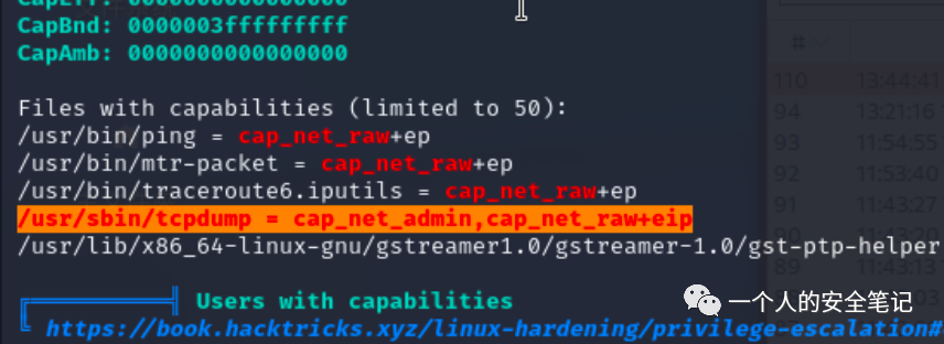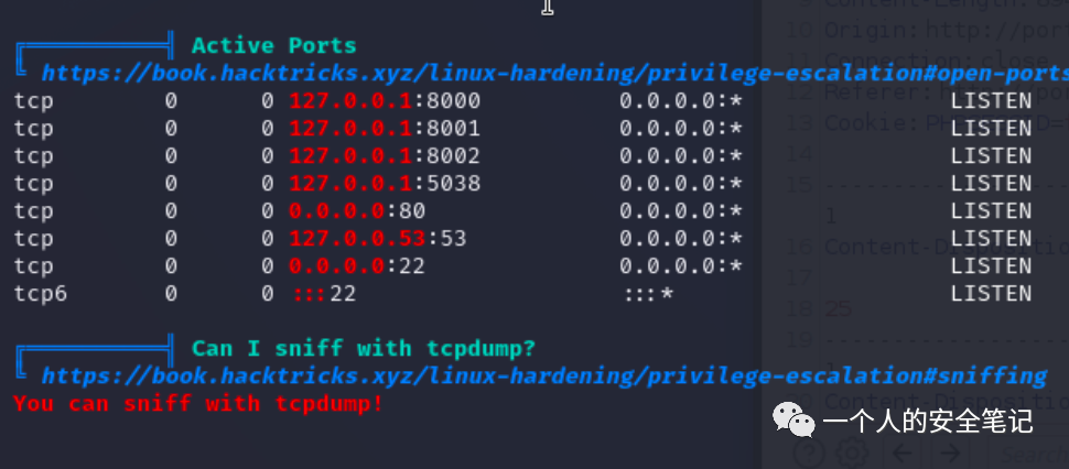 jpardella:x:1004:1004:Joey Pardella:/home/jpardella:/bin/bash将 linpeas 上传至目标服务器上运行进行深度的信息收集,发现 tcpdump 是可以被使用的。