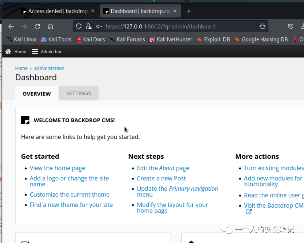 使用前面的隧道工具,将 backdrop 站的端口转发至本地,浏览器登录后成功进入系统控制面板。