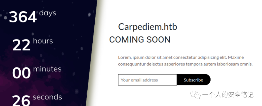 使用浏览器访问服务器的 80 端口,在首页中能够得到一个一级域名 carpediem.htb。