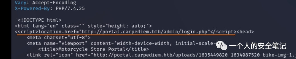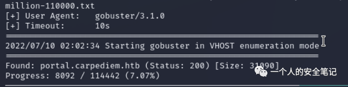 简单预览下没有其他的收获,转而使用 gobuster 工具枚举了一下二级域名,发现存在一个叫 portal.carpediem.htb 的站点。