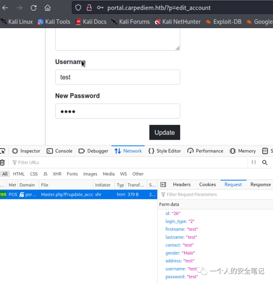 留意参数提交请求,在修改账号功能中发现一个 login_type 参数前端隐藏了,推测该参数可能是用来区分是否为管理员登录类型用的。