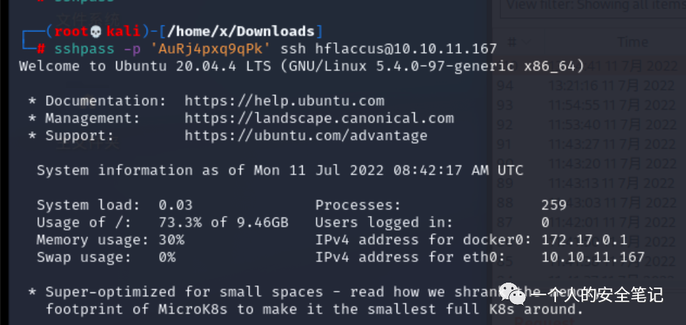 hflaccus:AuRj4pxq9qPk$ sshpass -p 'AuRj4pxq9qPk' ssh hflaccus@10.10.11.167