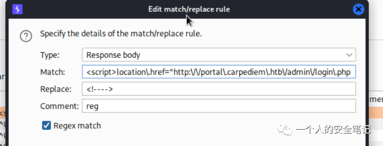2,test,test,test,2022-07-09 18:05:07,test,<blank>,<blank>,26,test,098f6bcd4621d373cade4e832627b4f6 (test),<blank>,Male使用 admin 帐号进行登录后页面会强制跳转,在 burp 中看页面源代码是发现是存在 location.href 函数导致浏览器跳转了。写一条 burp 的 replace rule 规则,将其替换掉就可以了。