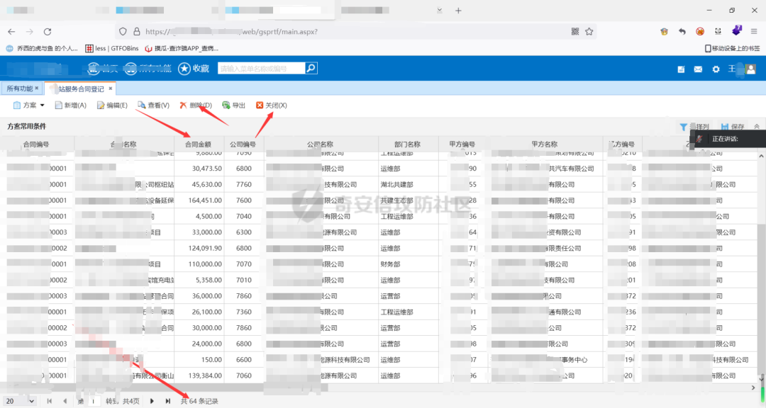然后进入应用里面查看,全是合同等敏感数据,还可对其增删改查。