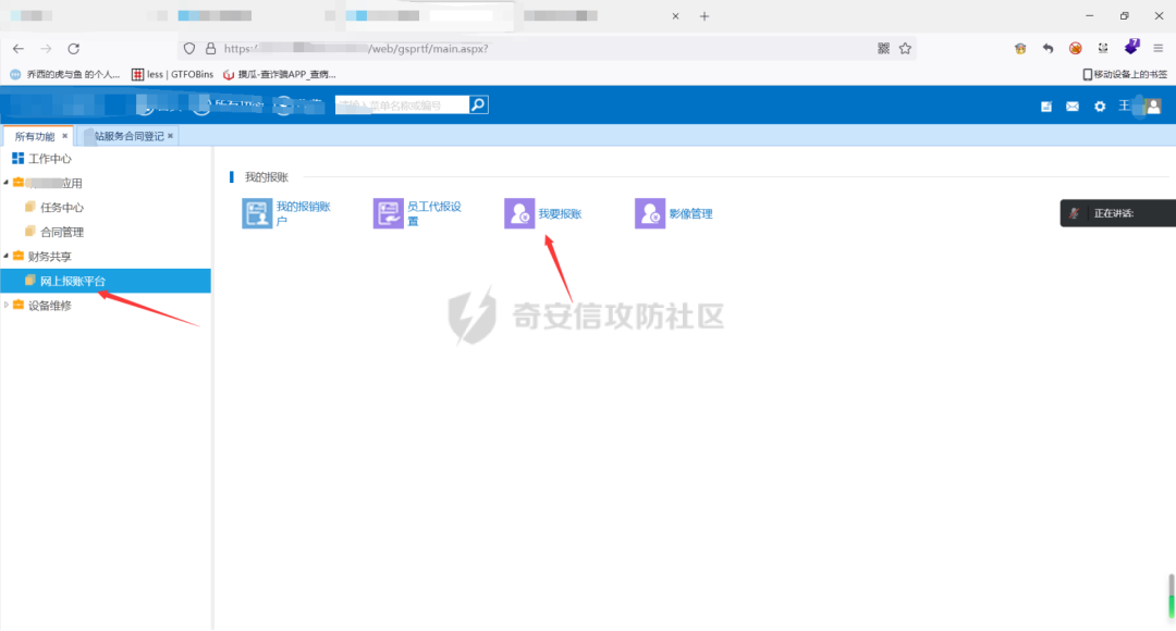 然后点击右上角的应用中心会跳过这个系统进入下一个子站。然后使用F12大法开始审计JS,看看JS文件里有没有开发遗留的账号和链接接口。