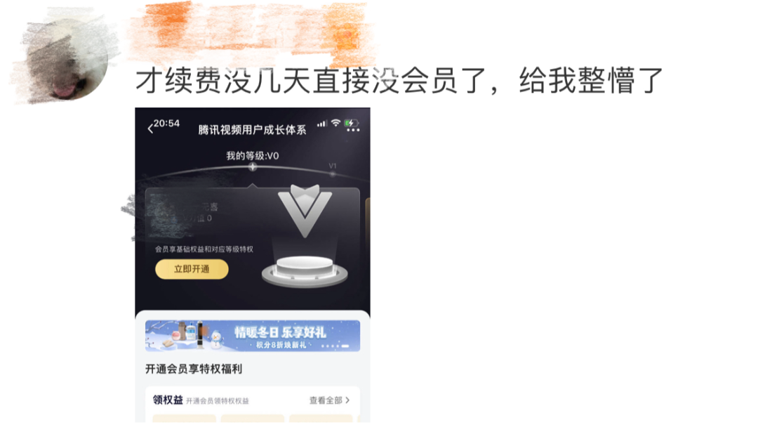 2023年12月3日晚,“腾讯视频崩了”“腾讯会员没了”相关词条冲上热搜。