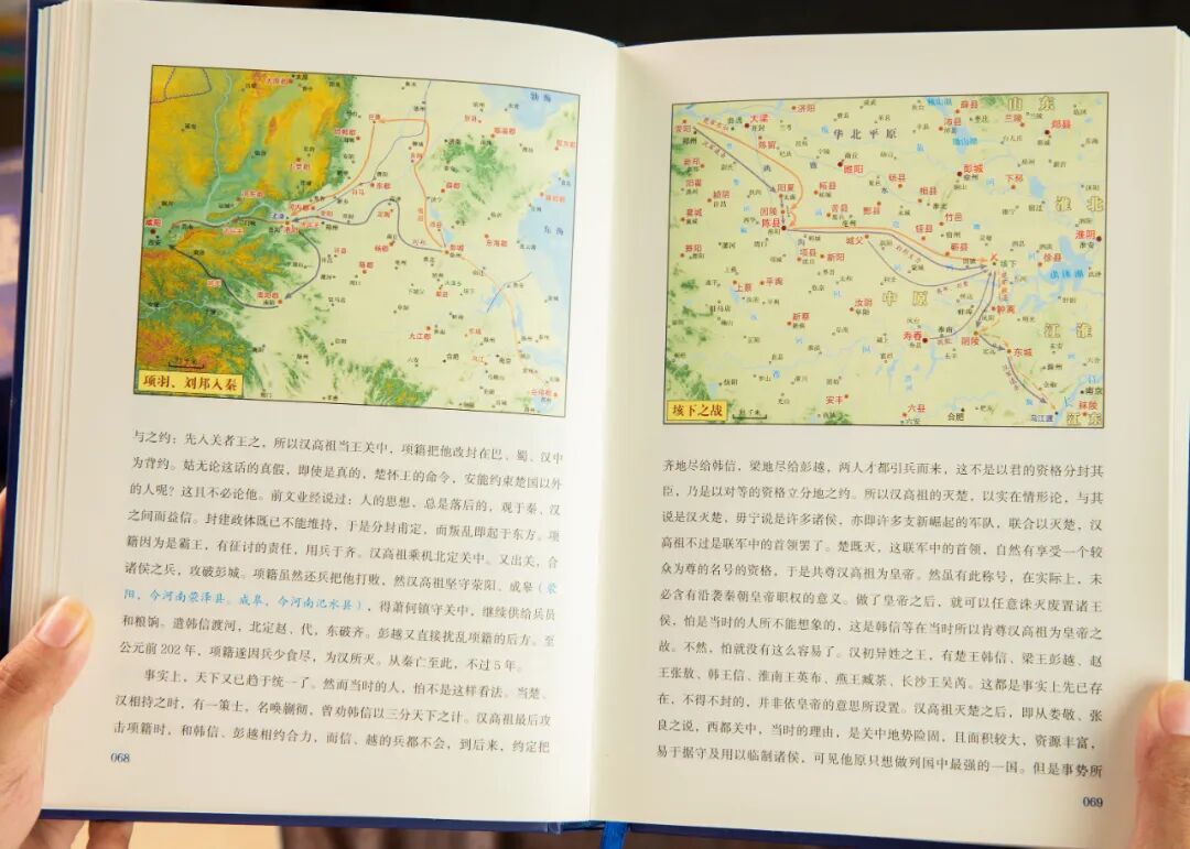 这套书还以地图为“轮廓”,专门邀请地图专业大神李不白,编绘了100幅原创全彩大地图。花费5年时间,考证了无数史料,山形水势、地理方位、路线方向一眼清晰明了。平面的历史,立体地展现,历代疆域图、帝国征域图、诸侯割据图......真正做到身临其境,让历史场景复原再现!读了这套书,你才能明白,三国时期群雄割据的争霸战况、西汉张骞出使西域的具体路线、![]()