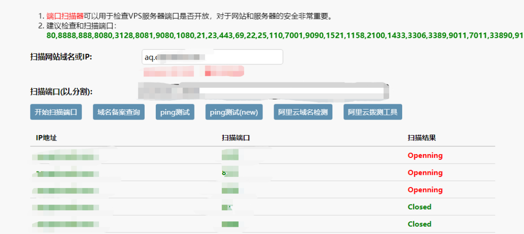 这是在线工具 这里只做演示 一般常用端口 或上工具全端口扫