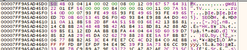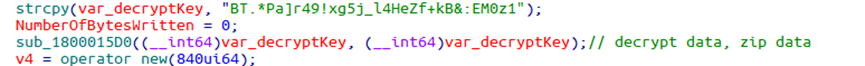 内存加载的PE为DLL文件,主要功能在sub_180002440函数中实现。首先采用相同的解密方法,解密文件中内嵌的zip压缩包数据。