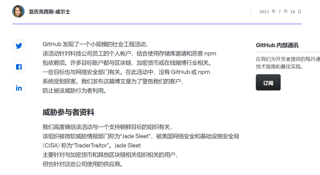 [5].https://github.blog/2023-07-18-security-alert-social-engineering-campaign-targets-technology-industry-employees/
