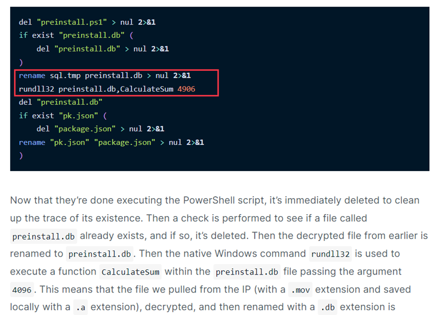 安全研究人员也发现了下载器样本46127a35b73b714a9c5c58aaa43cb51f出现在此次攻击活动中,但报告发布时他们仍在分析该样本。样本的名称sql.tmp和preinstall.db,以及导出函数名CalculateSum均在恶意脚本中出现。