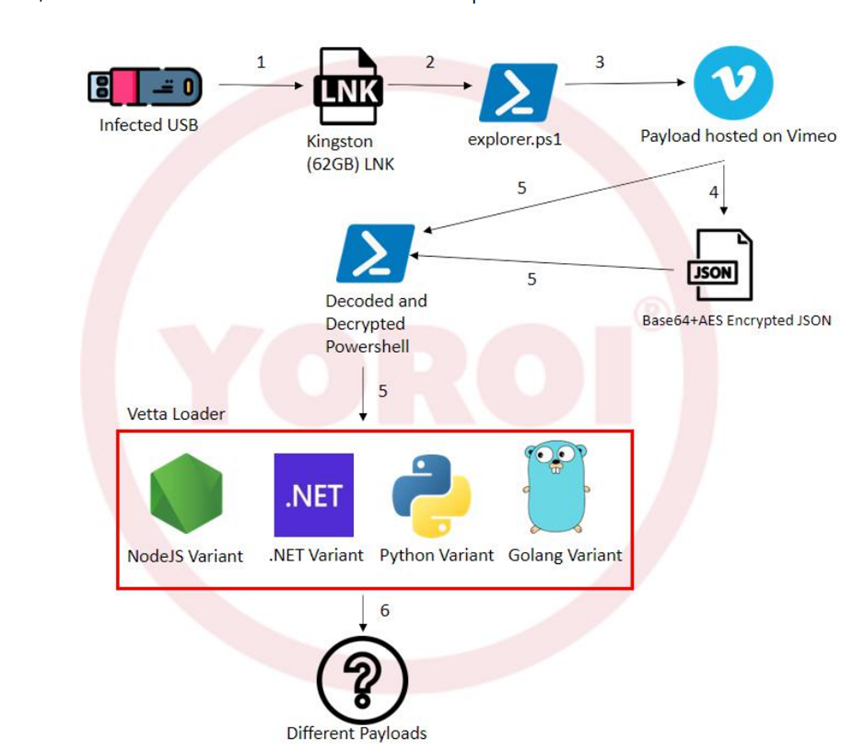已识别的恶意软件名为“Vetta Loader”利用公共视频服务作为传递恶意负载的渠道。该报告表明,该活动背后的威胁行为者是讲意大利语的,且具有中高置信度。值得注意的是,该研究发现了 Vetta Loader 的四种不同变体,每种变体使用不同的编程语言(NodeJS、Golang、Python 和 .NET)进行编码,同时共享与命令和控制服务器通信以及后续阶段下载的通用方法。