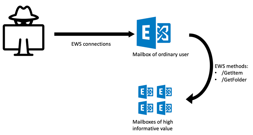 对手行动的第一阶段是获取对邮箱的访问权限。迄今为止观察到的恶意活动包括暴力攻击。另一个观察到的获取邮箱访问权限的途径是利用 CVE-2023-23397漏洞,该漏洞允许窃取用户的 NTLM 哈希值。