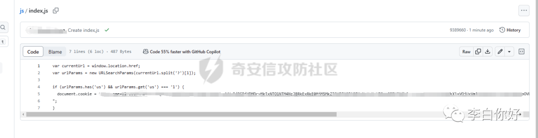 // 获取当前页面的 URLvar currentUrl = window.location.href;// 解析 URL 查询字符串中的参数var urlParams = new URLSearchParams(currentUrl.split('?')[1]);// 检查是否存在名为 "us" 的参数,并且它的值是否为 "1"if (urlParams.has('us') && urlParams.get('us') === '1') {// 设置名为 "usCookie" 的 Cookie,值为 "1"document.cookie = "这里是我们获取到的Cookie";}