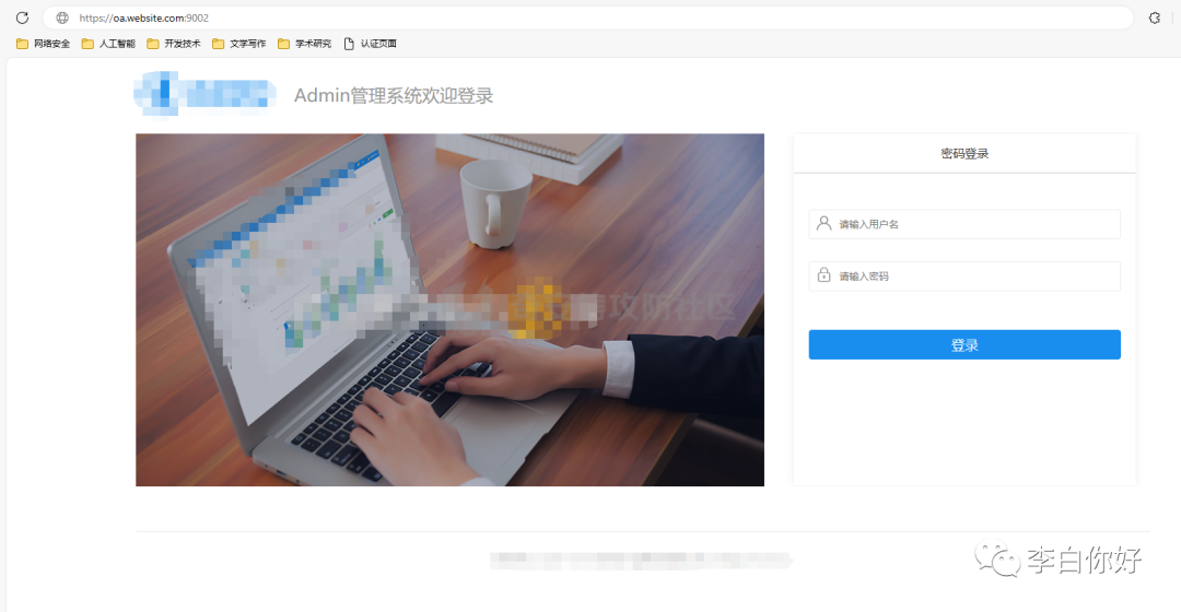 授权拿到站以后,先是扫描一波,发现一个oa登录页面https://oa.website.com:9002