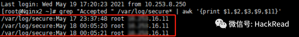 但是刚排查到第二台服务器的时候就发现了问题,存在16.11对多个服务器进行了登录行为(通过询问客户运维人员得知,大量服务器用了同弱口令)