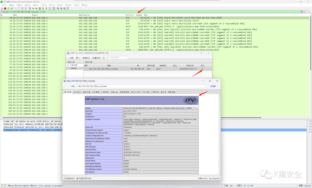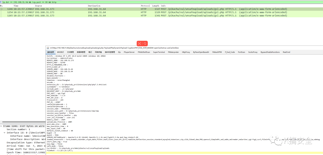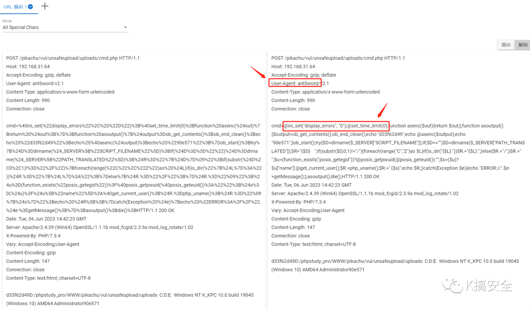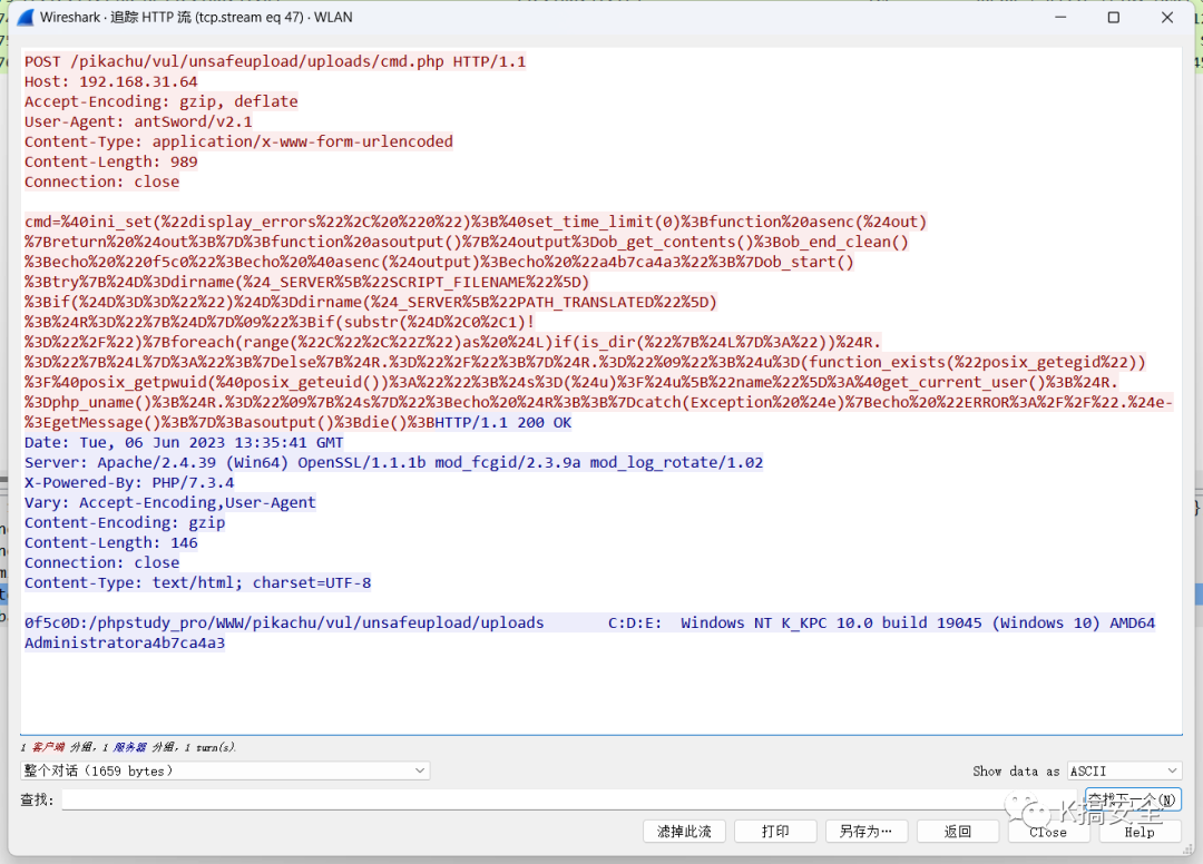 加密后的明显参数多数是_0x......=这种形式所以_0x开头的参数名,以及dirname、get_current_user函数的字眼(需要讲请求内容解密后判断),后面为加密数据的数据包可以鉴定为蚁剑的流量特征