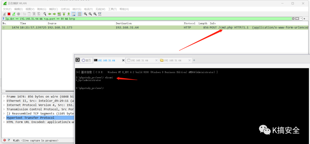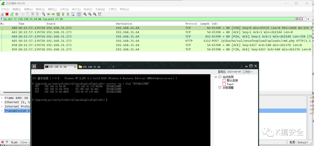 在过滤器输入过滤命令,筛选出192.168.31.64的目标地址和80端口
