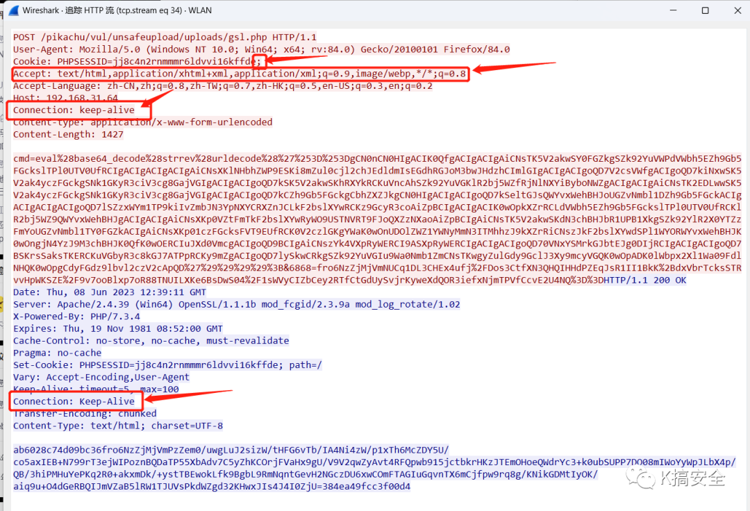 请求中的Cinnection:Keep-Alive是冰蝎默认使用的长连接特征