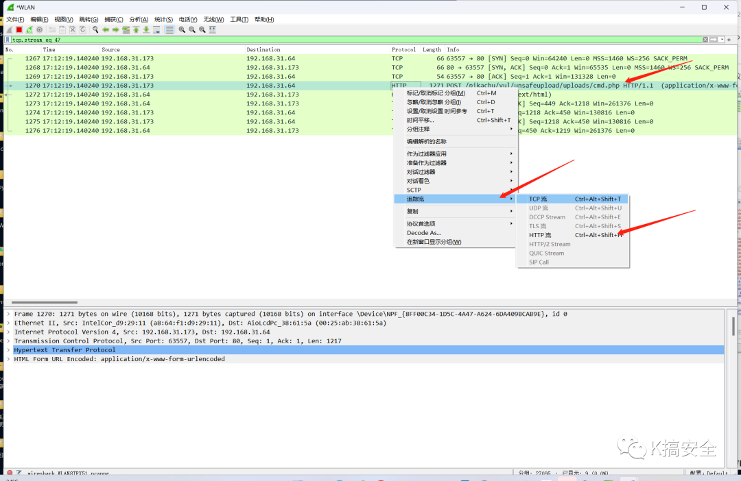 WebShell的流量特征从HTTP协议进行分析,因为WebShell是通过HTTP协议进行远程控制的一种方式。在查看WebShell的流量特征时,需要分析HTTP请求和响应报文的内容,以及HTTP头部的字段等信息。