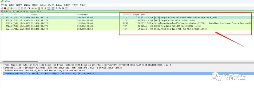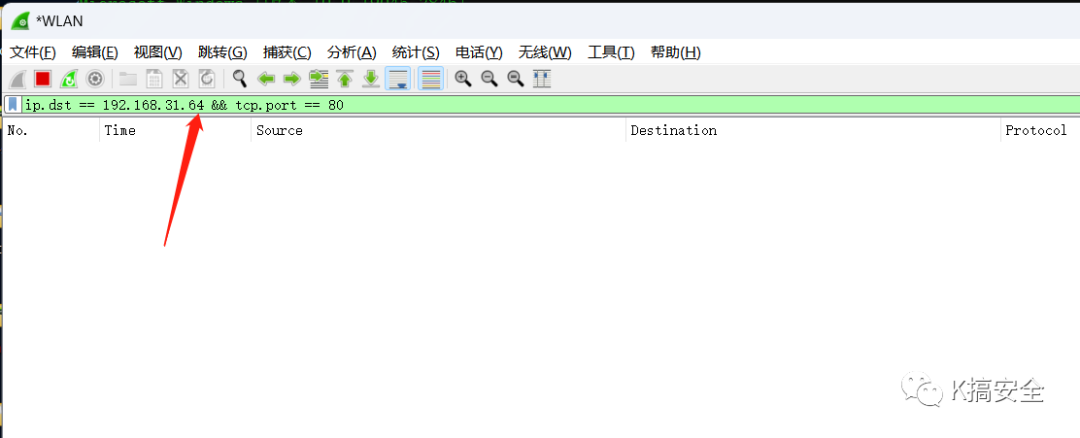 ip.dst == 192.168.31.64 && tcp.port == 80这样就对只对192.168.31.64:80端口检测了