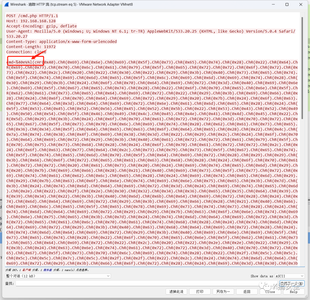 eval不是菜刀就是蚁剑,但是后面跟着z0就可以判断为菜刀,并且后面跟着base6的特征
