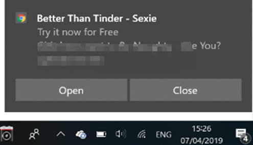 即使受害者的浏览器处于关闭状态,攻击者依然可以通过windows通知推送相关链接,推送效果图如下: